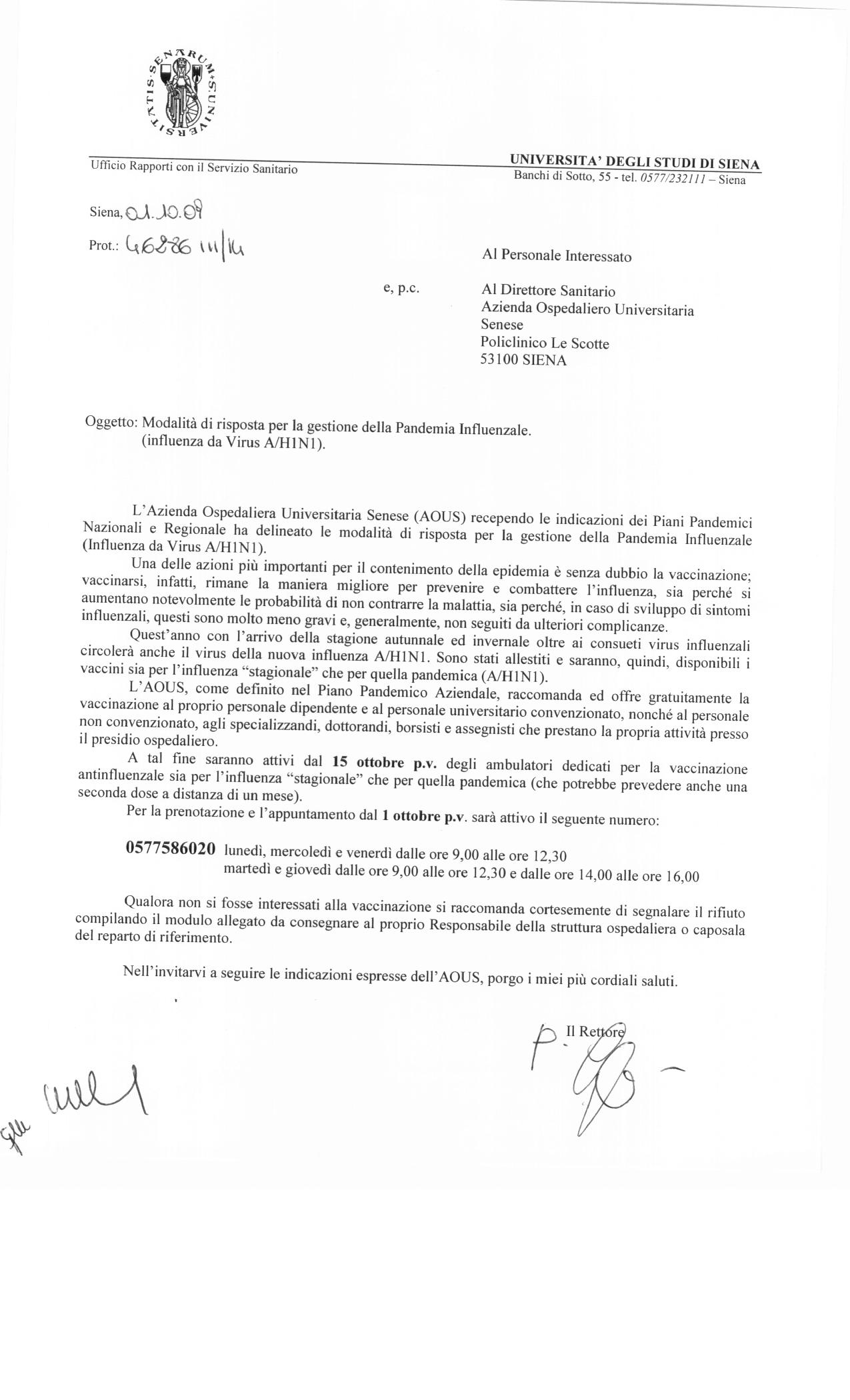 Va detto altresì che la previsione di un rifiuto esplicito contraddice la circolare ministeriale Fazio sul vaccino per l’influenza A e va addirittura oltre le disposizioni vigenti per le vaccinazioni obbligatorie!