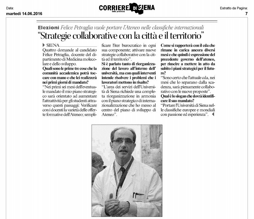 Cosa può chiedere la Città al futuro Rettore? Di resistere a manovre esterne, di politica universitaria e non solo; di mantenersi strette le eccellenze, valorizzarle e potenziarle; di portare l’Ateneo senese ai vertici del panorama nazionale e internazionale; di riorganizzarsi al proprio interno; di legarsi al tessuto cittadino e fare cultura diffusa coinvolgendo le varie realtà della città; di coltivare culturalmente il tessuto sociale di Siena, per renderlo consapevole delle proprie reali potenzialità; di rompere lo stato d’assedio di una inerzia diffusa con una serie di sortite concrete in grado di attivare effetti a catena virtuosi; di saper scegliere una classe dirigente illuminata; di operare per fare della cultura, della tecnologia e della scienza una forza economica di sviluppo e di crescita, stabilendo alleanze con le forze sane del territorio.