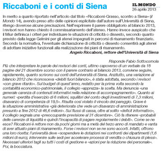 Filed under: Commissariarla per salvarla, Per riflettere, Quelli dell'uva puttanella | Tagged: Angelo Riccaboni, Collegio revisori dei conti, Fondazione Crui, Il Mondo, Ines Fabbro, Maria Chiara Carrozza, Risanamento, Smith Kline, Toscana Life Sciences, Università di Siena | 4 Comments »