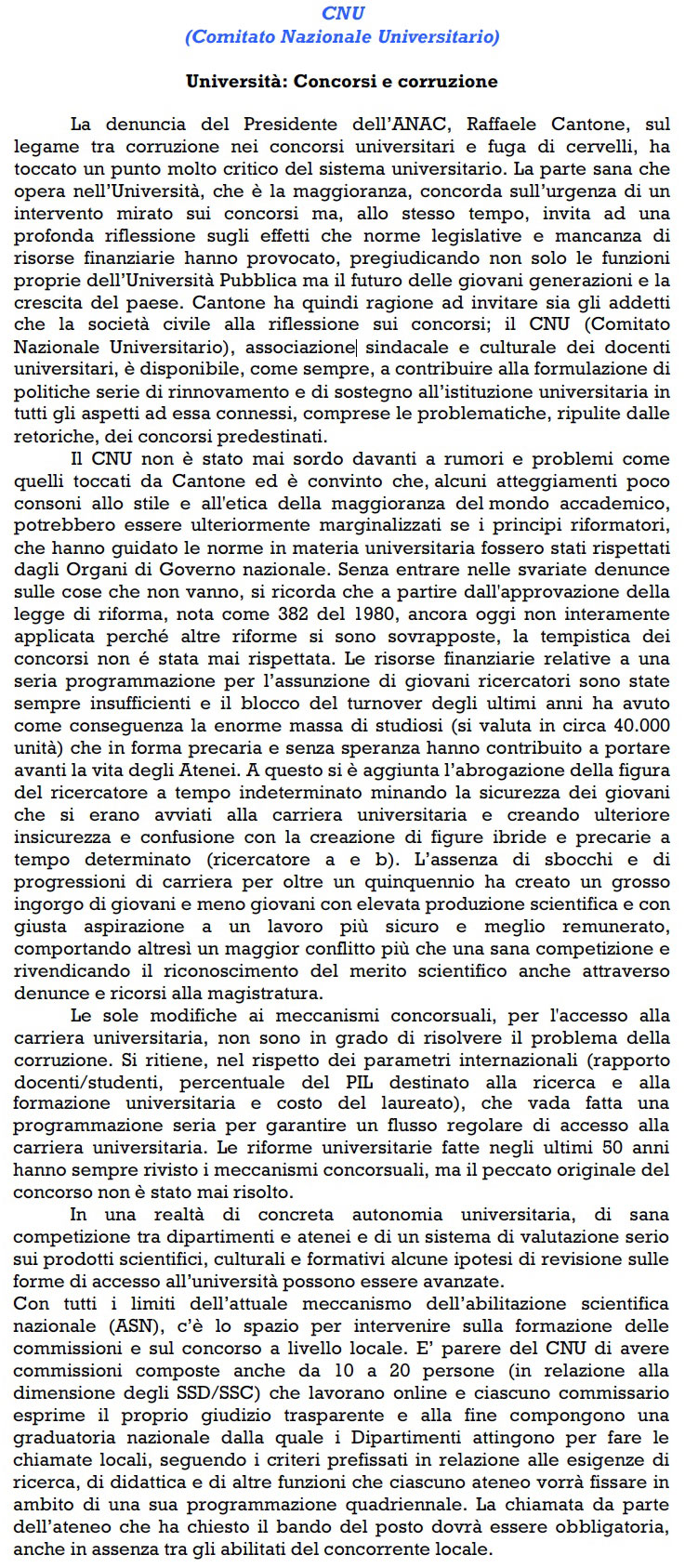 Filed under: Diritti negati, Emergenze, Per riflettere, Quelli dell'uva puttanella | Tagged: Anac, Cnu, Comitato Nazionale Universitario, Concorsi universitari, Corruzione, Fuga dei cervelli, Raffaele Cantone | 5 Comments »