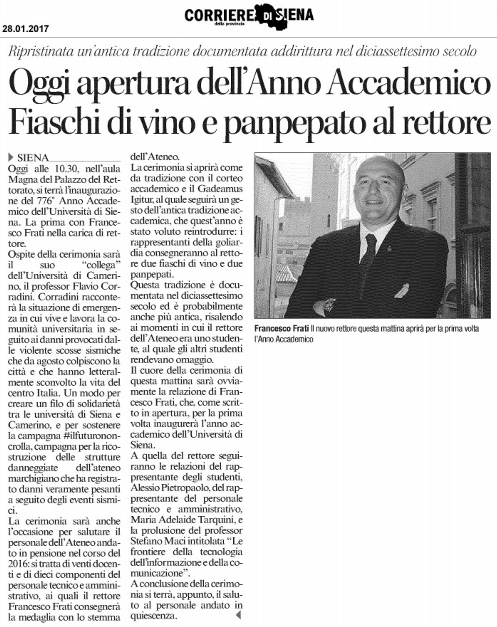 Rabbi Jaqov Jizchaq. Scrive il Rettore Francesco Frati nel discorso di rettorato: «L’Ateneo del 2017 non è soltanto risanato: è anche diverso da quello del 2010 (…) ho ereditato un Ateneo che nel periodo del risanamento è stato in grado di mantenere, o addirittura accrescere, la propria attrattività garantendo standard qualitativi di didattica molto elevati, razionalizzare l’offerta formativa…».
