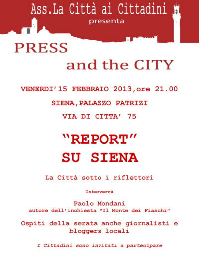 Filed under: Commissariarla per salvarla, Il saccheggio, Per riflettere, Quelli dell'uva puttanella | Tagged: Cattiva Maestra, Il Monte dei fiaschi, La Città ai Cittadini, Paolo Mondani, Press and the City, Report, Università di Siena | 10 Comments »